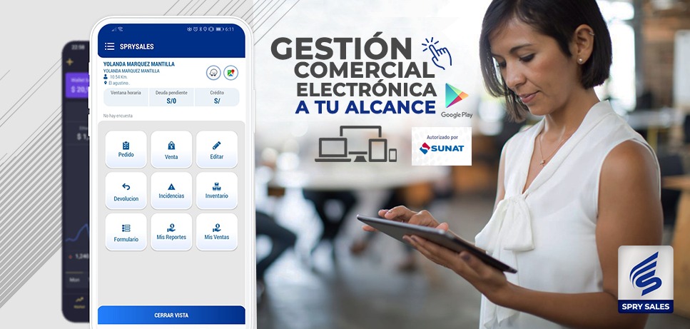 Es una herramienta de gestión que te permitirá tomar el control de tu operación comercial de manera integral, control de stock, pedidos, facturas, registro de compras, monitorear tu ruta de reparto, gestión de entregas, venta en puntos fijos o móviles, conoce Spry Sales y se parte de la revolución digital.