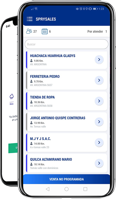 Ideal para distribuidoras o empresas con fuerza de venta, deseas pasar tus pedidos en tiempo real, optimiza las horas de corte en tu empresa, organiza tus procesos de pedidos y programación de rutas, controla la visita de tus clientes con Spry nadie se queda sin pedido.