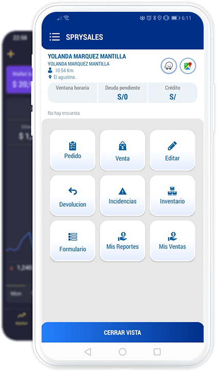 Con Spry podrás observar a fuerzade venta en tiempo real, ver el avance de cada uno de forma global o independiente, visitas de tus clientes, tus clientes hicieron pedido podrás verlo también.